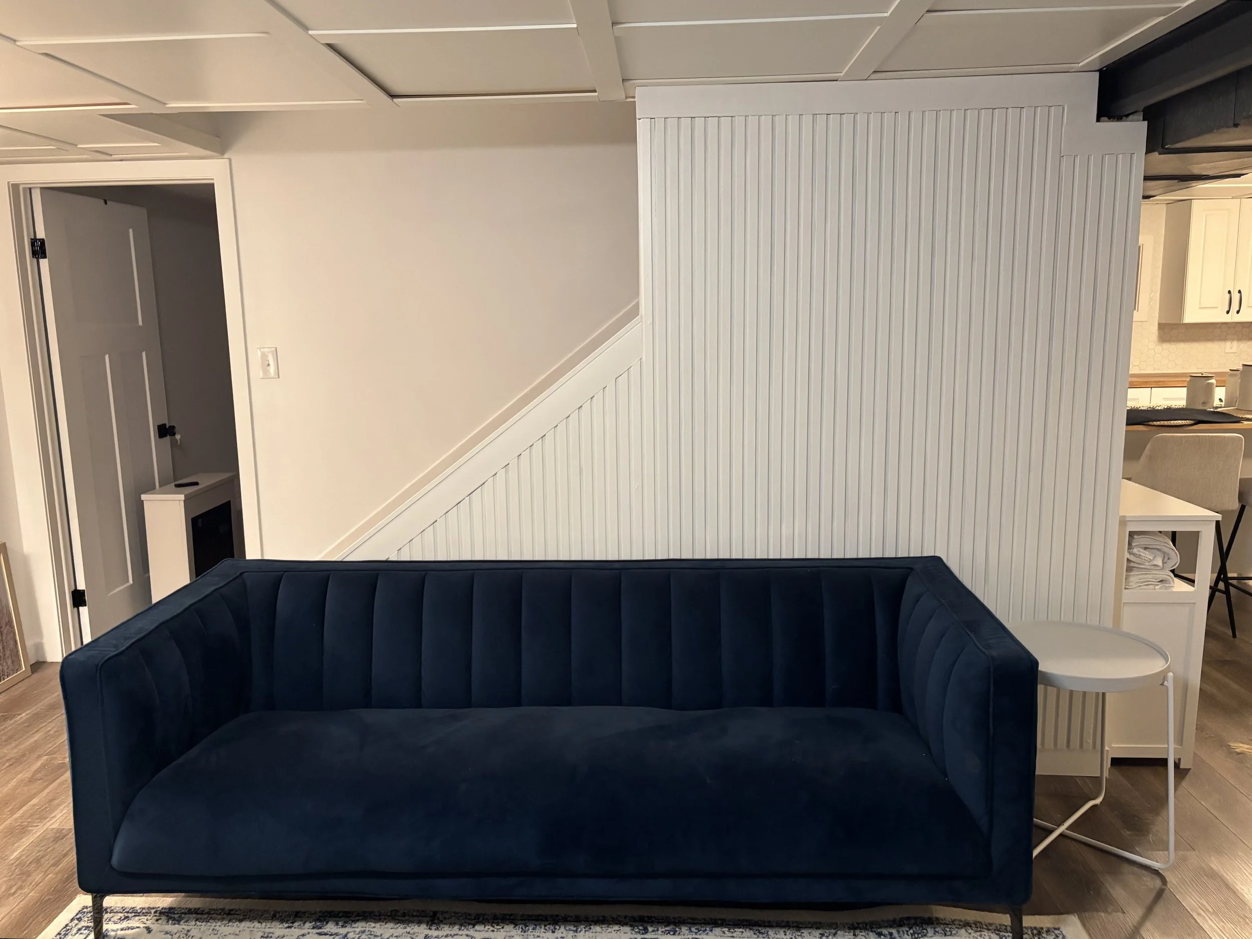 Fluted shiplap accent wall installed to add texture, depth, and architectural interest.